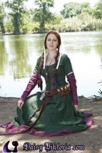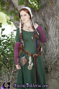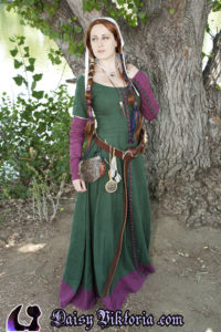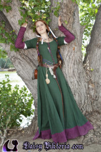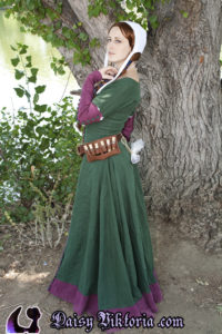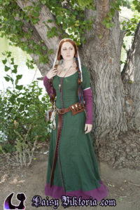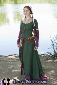 Created for a themed event, this is an late 14th / early 15th century historical take on Morgan Le Fey. Throughout the 14th century, legends of King Arthur developed in popularity. Though the story of Arthur took place much earlier, I wanted to capture Morgan Le Fey through the style of this period.