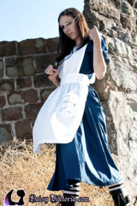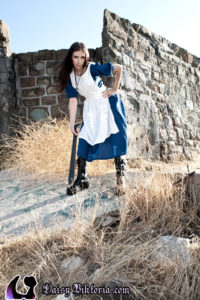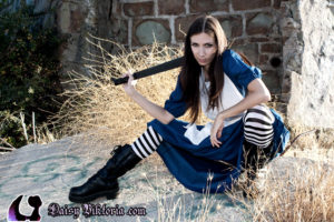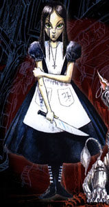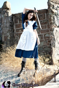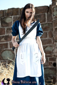 American McGee’s Alice Alice from American McGee’s Alice This costume is made of light cotton material. The designs were painted onto the apron to match the original game design. Model: Lauren Brooks Photographer: Chris