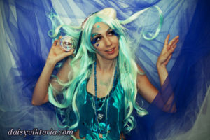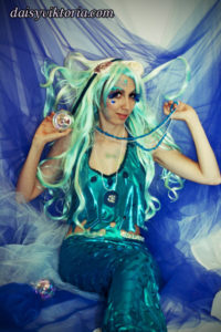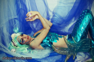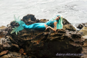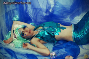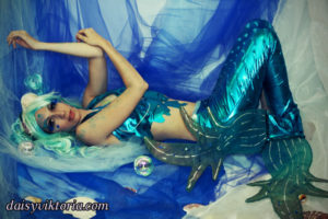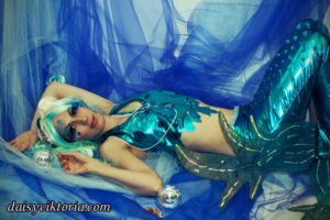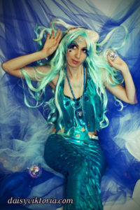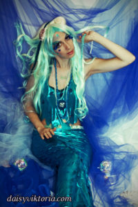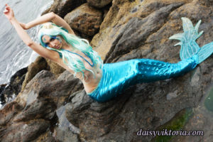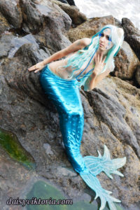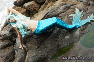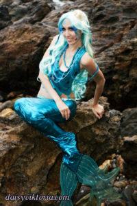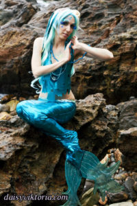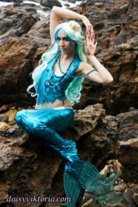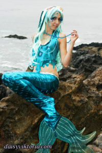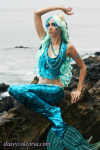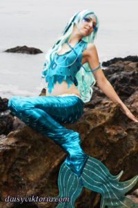 Aqua Mermaid Aqua Mermaid The aqua mermaid sister has a mystical mer-tail and halter top, each made of water-safe materials for her ocean adventures. Model: Lauren Brooks Photographer: Chris