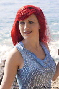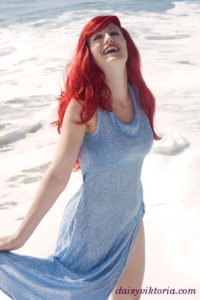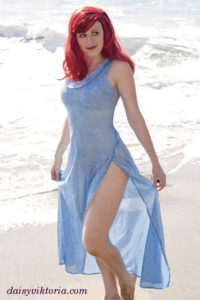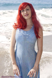 Ariel – Sparkle Dress Ariel from The Little Mermaid This is the dress Ariel wears her father gives her legs again at the end. I used the most sparkly blue fabric I could find for it. Model: Daisy Photographer: Chris