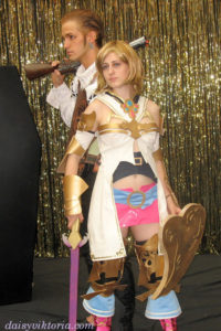 This was made for a big Final Fantasy XII group. There are so many details, and whenever I thought I’d tackled a bunch, more just seemed to appear! This was my first time making armour, so that was a challenge in itself, and even the pattern drafting was weird. I chose the Eschucheon shield since it’s heart shaped and pointed in the direction I wanted, along with a modified version of the Save the Queen sword.