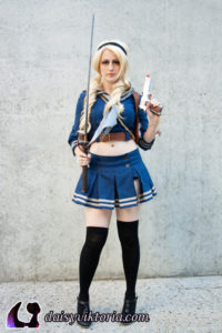 Baby Doll from Sucker Punch Baby Doll from Sucker Punch After seeing the movie costume on display in person, I was able to get most of the exact same materials. The props were also painted and decorated by me. Model: Daisy Photographers: Chris Taylor and Darkain