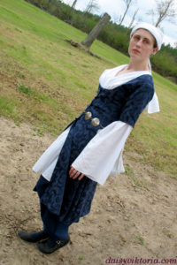 Blue Persian Blue Persian This is a simple versian of late period Middle Eastern garb, with minimal layers for a warm climate. It consits of a fully lined entari coat, salwar / pants, a chemise, and a head covering. Model: Daisy