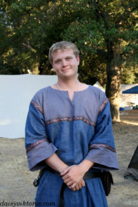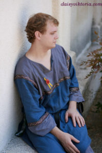 Blue Tunic Blue Tunic This is a men’s tunic. It is constructed using period patterning, and it is decorated with contrasting fabric and trim. Model: Chris Photographer: Daisy