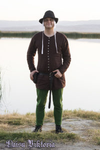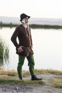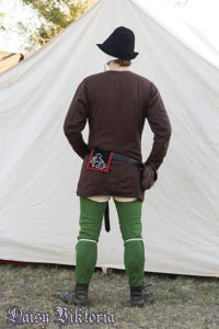 Brown Cotehardie and Green Chausses Brown Cotehardie and Green Chausses This cotehardie is made of unlined linen with hand sewn button holes. The chausses are also linen. Model: Chris Photographer: Daisy Watch a video on how I create this classic costume style!