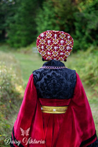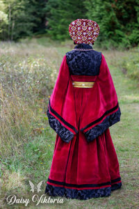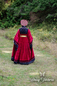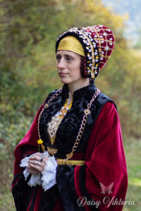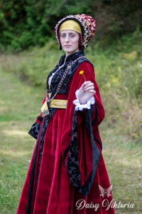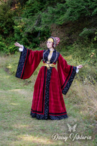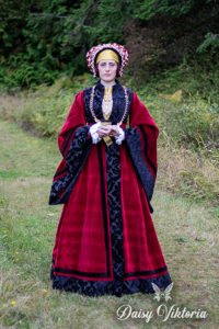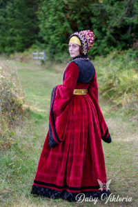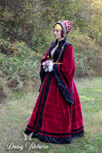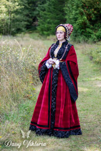 Cleves Court Gown 16th century German Anne of Cleves Court Gown Made of silk taffeta and cotton velvet, this gown was inspired by images of the 1530s from what is now northern Germany. Model: Daisy Photographer: Joy Knouse