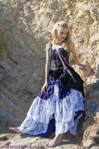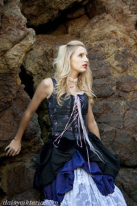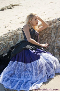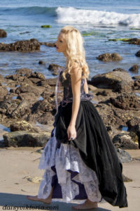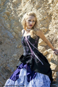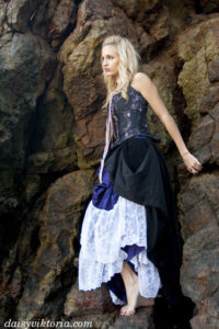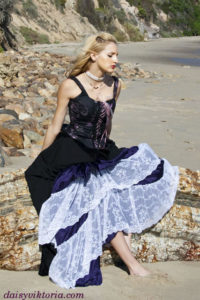 Damsel in Black Damsel in Black This damsel is wearing a black skirt over a lacy purple underskirt. Her bodice is black with pink details and front lacing. Model: Skylar Photographers: Vadama, Daisy