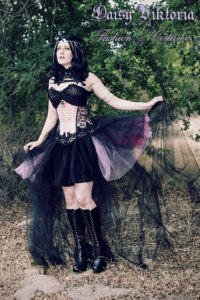 Dark Unicorn Princess Dark Unicorn Princess I created this Dark Unicorn Princess and had so much fun! The costume consists of an embellished corset, a large tulle bustle, a neck corset, and of course, a unicorn! Model: Daisy Photographer: Chris Taylor