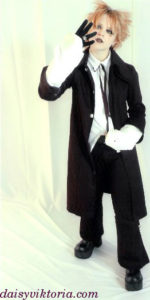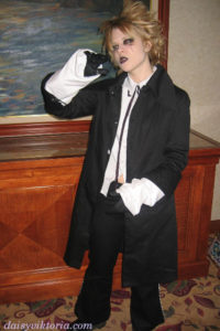 Kyo – Macabre Kyo from Dir En Grey This is Kyo’s Macabre outfit. I made the jacket and pants only. They are of a pretty common structure with lots of buttons sewn on and a double collar on the jacket. Model: Stephanie