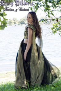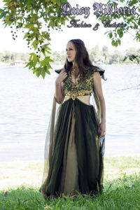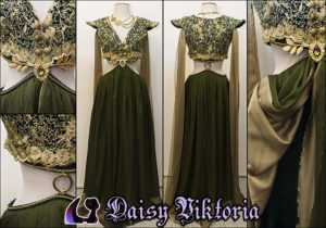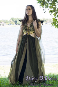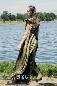 I was inspired to do a Margaery Tyrell gown from A Song of Ice and Fire (Game of Thrones). I wanted to incorporate some recognizable elements and silhouette from the show while creating my own design using her house colors.