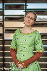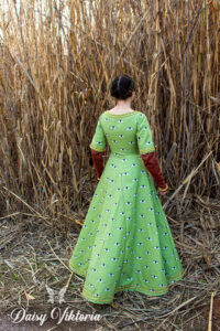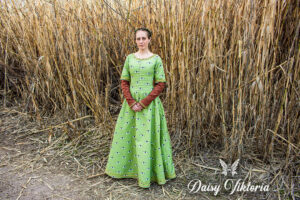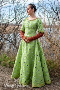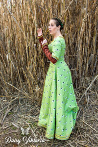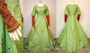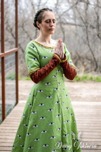 Medieval Eyes Dress Medieval Eyes Dress This dress is inspired by an image found in a 14th century manuscript telling the story of King Arthur and the quest for the Holy Grail. Here is a getting dressed video and a making-of video!
