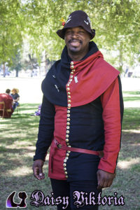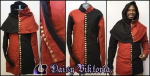 Red and Black Parti-Colored Male Cotehardie and Hood