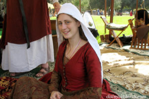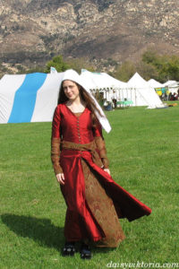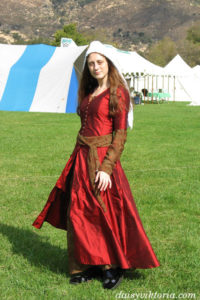 Red Persian 15th Century Persian This is based on Persian clothing from the 15th century. This outfit consists of a red silk entari and an under dress and sash in a print I found randomly. The head covering is a simple linen veil. Model: Daisy