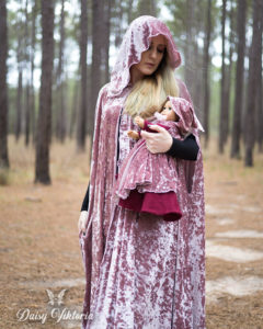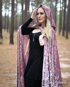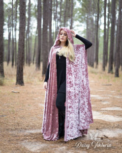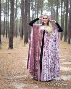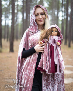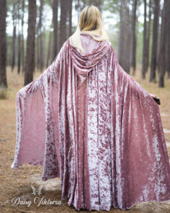 Rose Quartz Priestess Cloak Rose Quartz Priestess Cloak I love cloaks! This one is a full circle, and it’s a rather simple project to complete. This cloak has a hood and arm openings at the sides, and I’ve created one for myself, as well as for my American Girl dolls. Here is a making-of video!