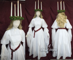 I love combining historical fashion with fantasy costuming! I’ve adapted 16th century Germanic fashion to create this fantasy Christmas dress. Santa Lucia is a beloved Swedish Christmas tradition honoring light within the darkness at winter solstice. Each year, I honor Lucia in my own costumed way, and this year I am doing that by creating a historically inspired fantasy Lucia dress. I took inspiration from 16th century German fashion to create this super fun costume mashup.