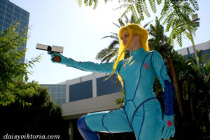 Samus – Zero Suit Samus Aran from Metroid This is Samus’s Zero Suit, which appears both in Smash Brothers Brawl and the latest in the Metroid series. The suit is made entirely from stretch vinyl, including all the piping and designs. Model: Daisy Photographer: Chris Taylor