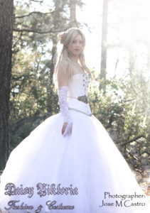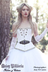 Star Wars Inspired Princess Star Wars Inspired Princess Inspired by the looks of Princess Leia and Queen Amidala from Star Wars, this ballgown features a white silk corset and tulle skirt with a jeweled belt accent and delicate lace gloves. Model: Katy Photographer: Jose M Castro