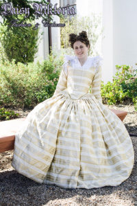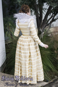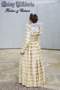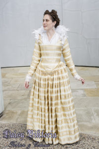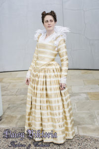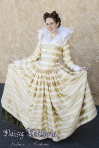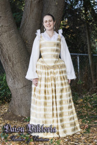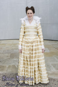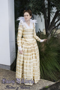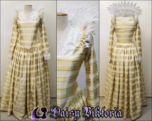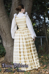 Striped Venetian Gown Striped Venetian Gown This gown is a 16th century Venetian style, made of striped silk fabric and lined in linen. The gown is worn over a corset, camicia, and under skirt. Model: Daisy Photographer: Chris