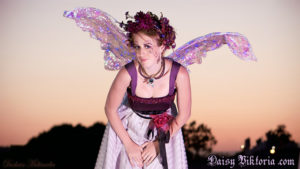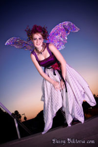 Sunset Faerie Sunset Faerie The Sunset Faerie lives in a world of both light and dark. Her wings are iridescent in the day and glowing at night. Model: Daisy Photographers: Darkain Multimedia, Lionel Lum, Chris Taylor