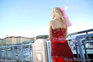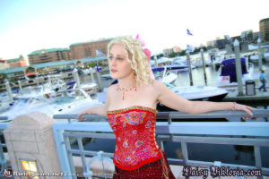 I love Terra, so I wanted to do a ballgown inspired by her for a masquerade ball. I stayed consistent with elements from her design, while adapting things to suit an evening atmosphere. The original bodice has been abandoned for the corset I made to go with my beaded Terra costume.