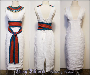 White Egyptian Sheath Dress Ancient Egyptian Strap Dress (Kalasiris) This dress was created using linen and structured so that the dress and straps provide full support. I made all of the accessories by hand too, using wood beads and wire.