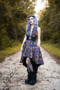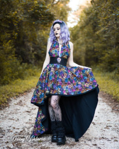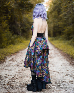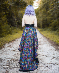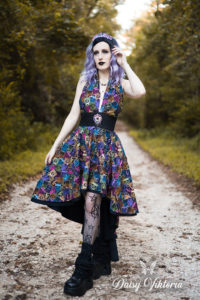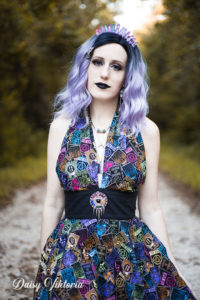 I love Halloween season and all of the beautiful fabrics that come out this time of year! I chose this rainbow tarot card fabric to create a spooky gothic halter dress.