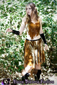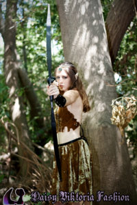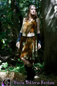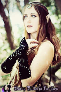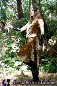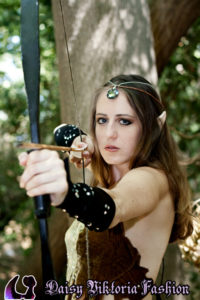 Woodland Elf Woodland Elf This woodland elf is wearing a Daisy Viktoria dress, made of embossed silk velvet with applied crystals. She also has some matching vambraces and a headpiece with a crystal in front. Model: Daisy Photographer: Chris